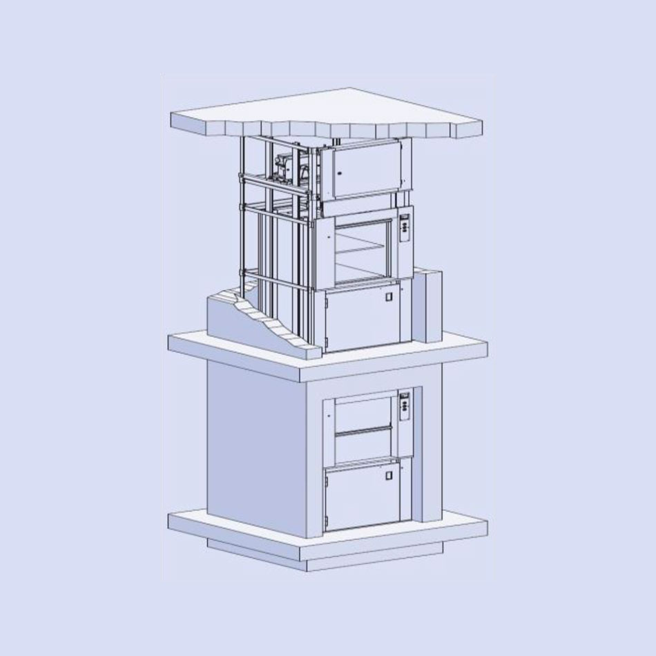 Positie liftmechanisme: Bovenaan de schacht